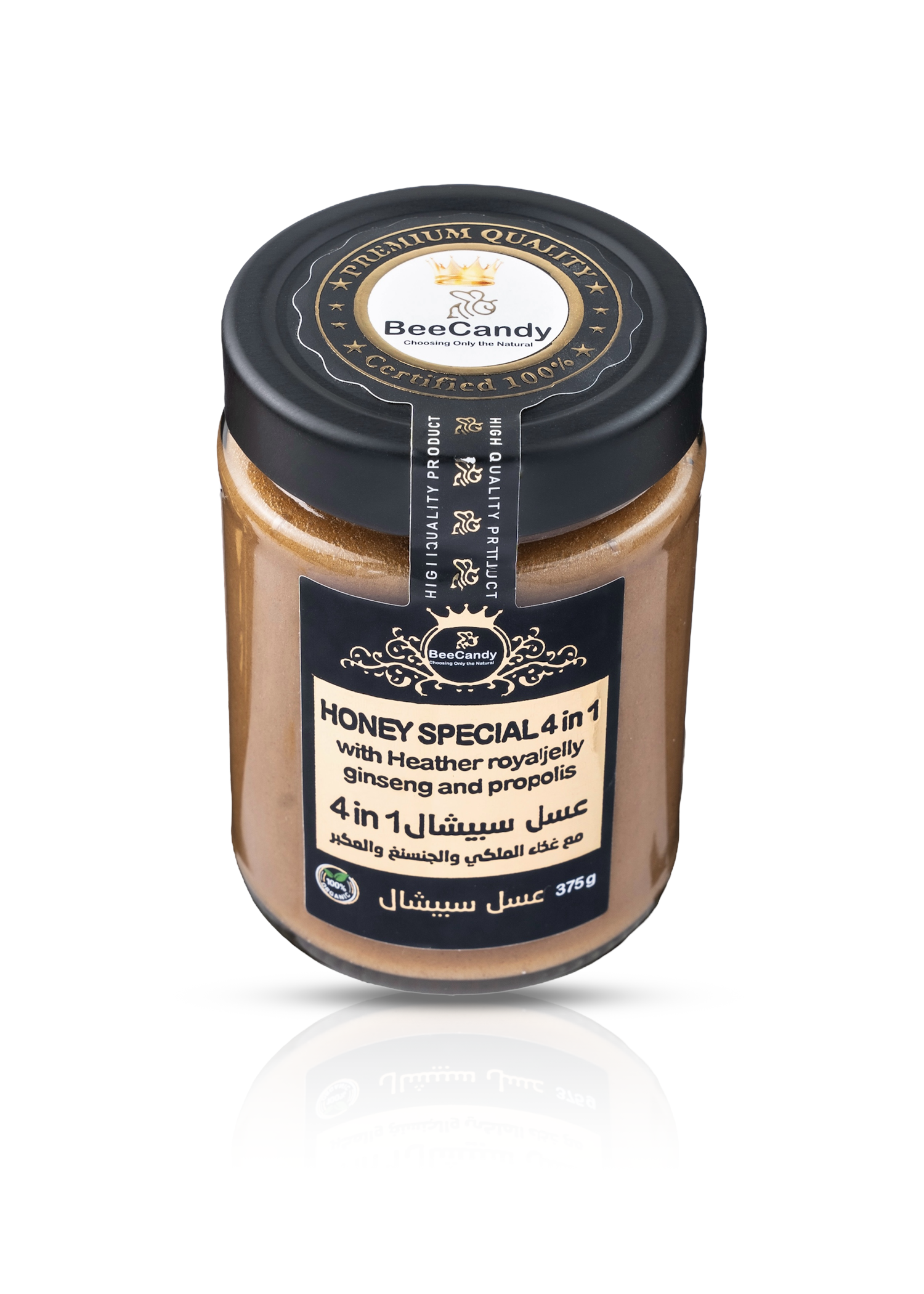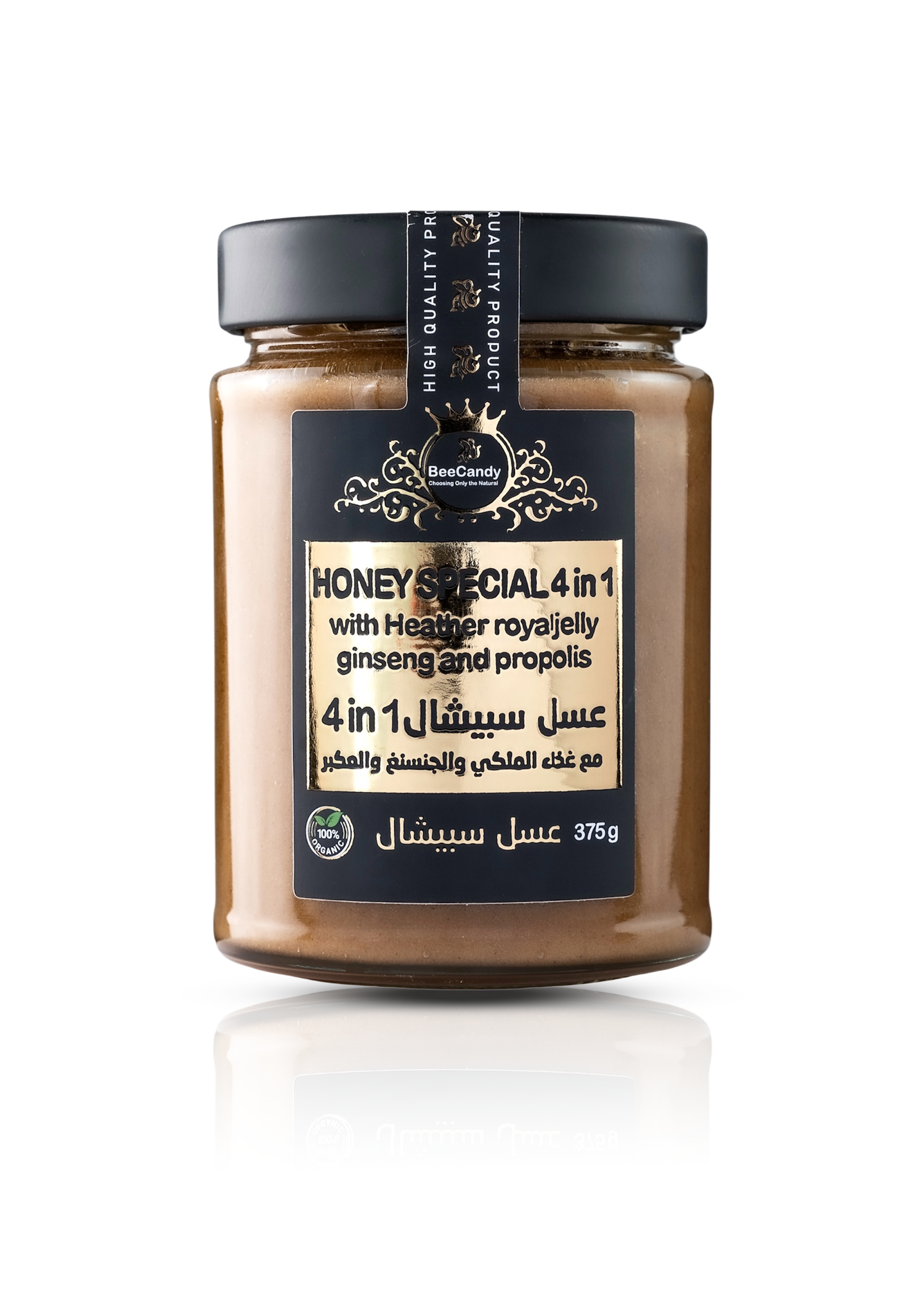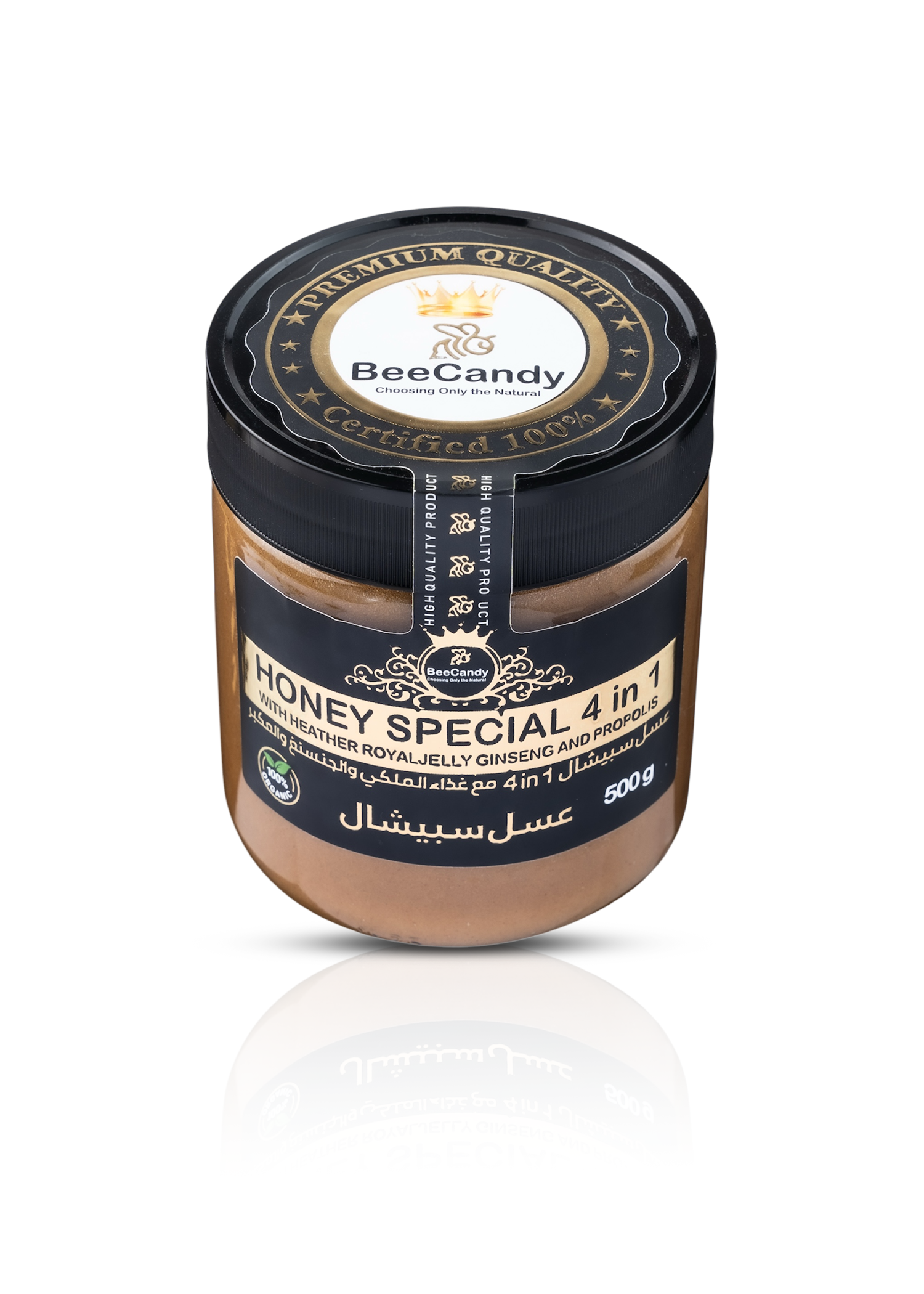 Speciale honing (mannenmengeling): Een rijk mengsel van heidehoning rijk aan stuifmeelkorrels, propolis, ginseng en koninginnengelei.